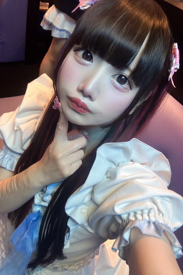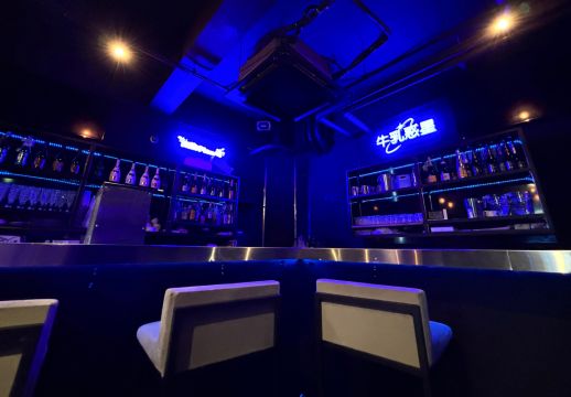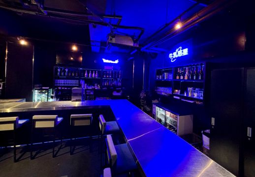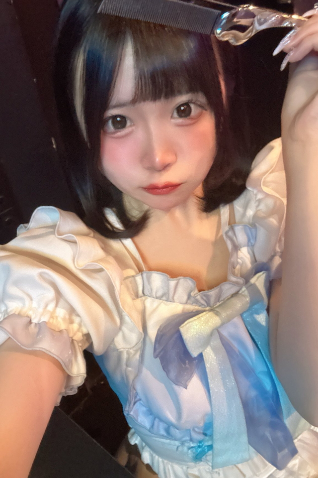 区役所通り沿いのビル7階へ上がると、パープルの照明がやわらかく灯る“宇宙空間”がお出迎え。シャンパンボトルが並ぶカウンターや、きらめくシャンデリアが彩る店内は、まるでプラネタリウムのような雰囲気です。ブルー×ホワイトのミルクカラー衣装に身を包んだメイドが、あなたの惑星旅行をエスコートします。