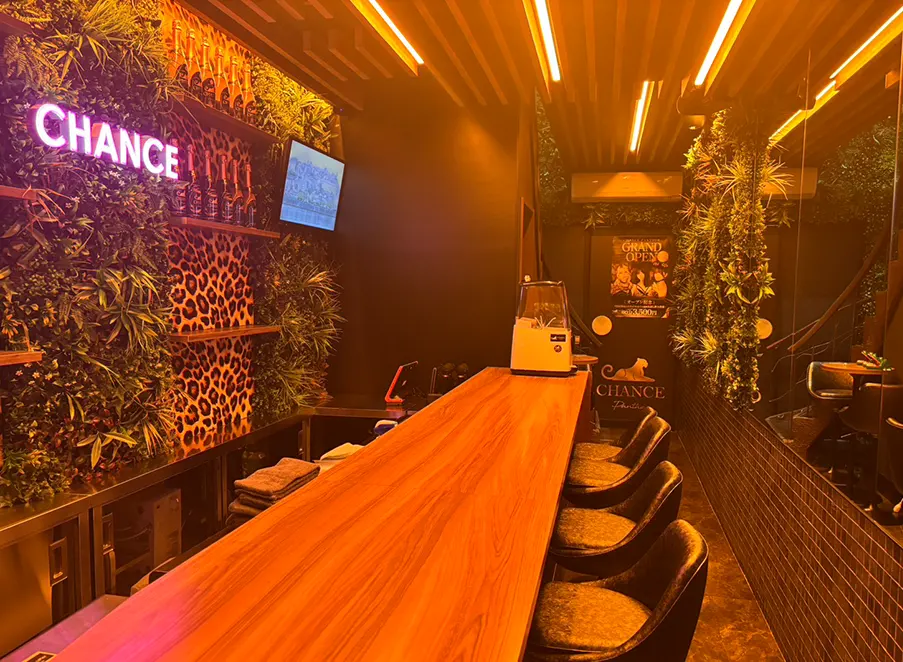 ヒョウをテーマにしたスタイリッシュな店内で、楽しく接客できます。