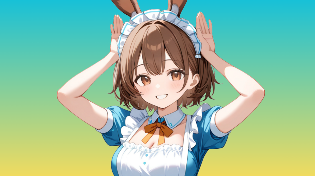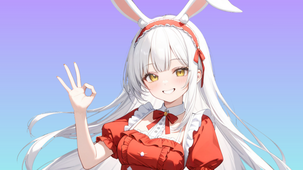 両手を頭の上に立ててうさぎ耳を表現。